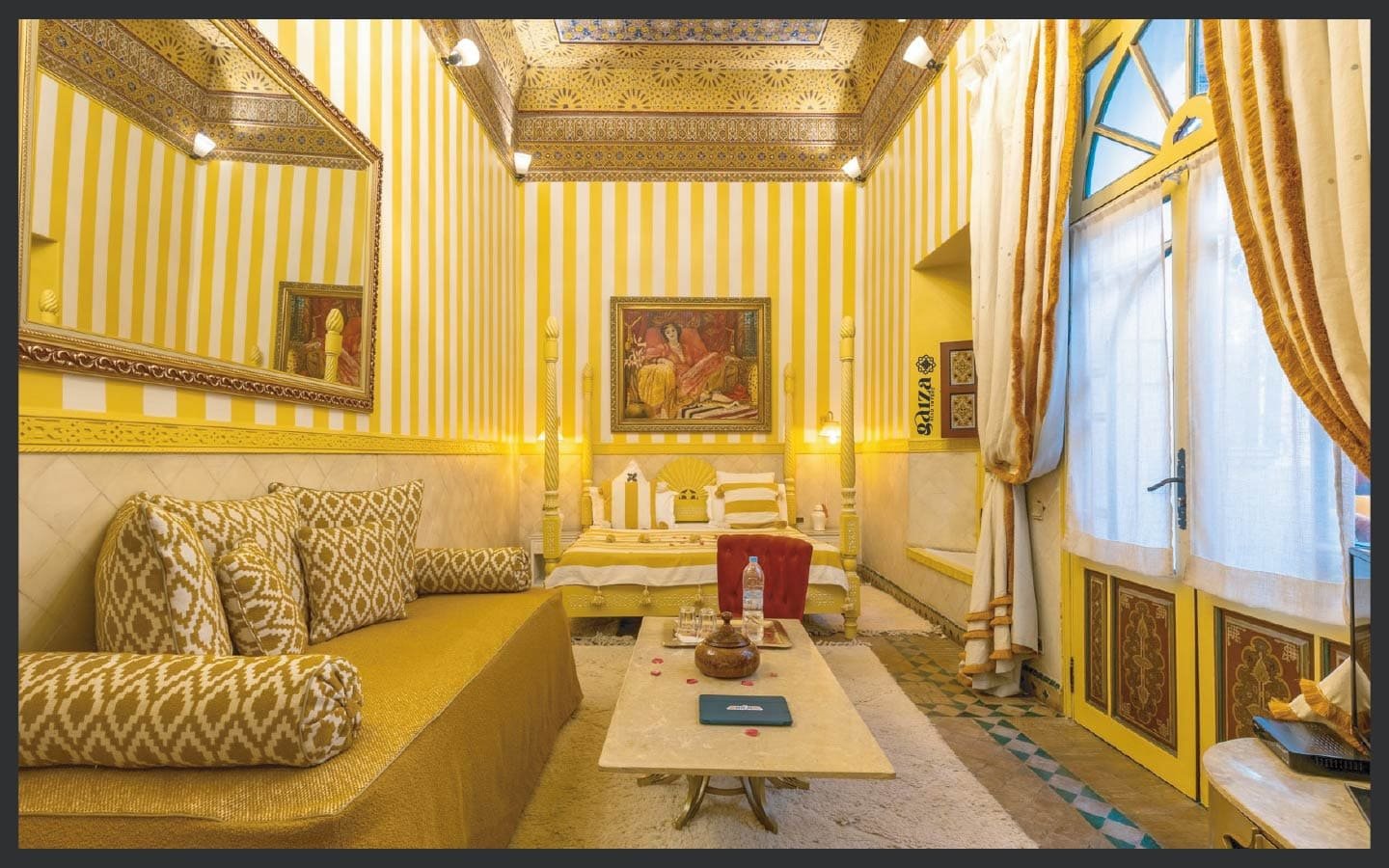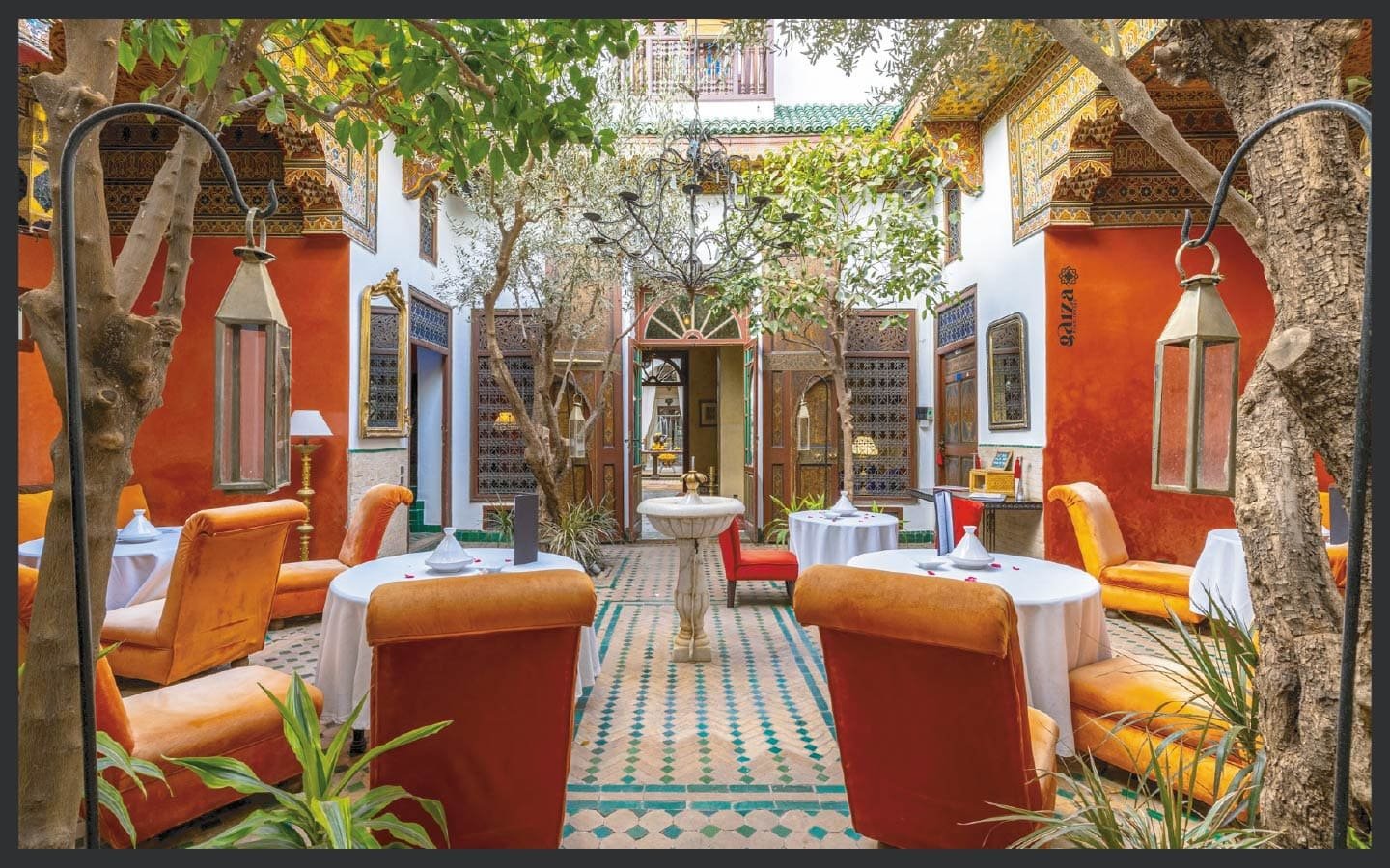 Rénovée avec un raffinement oriental chic, elle conjugue harmonieusement charme traditionnel et confort haut de gamme. Exploitée avec succès comme Maison d’Hôtes de luxe, elle séduit une clientèle internationale grâce à son spa en sous-sol, son bassin chauffé et ses espaces de réception élégants.